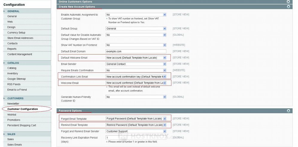 All these options for selecting templates can be configured per store view. For example, you have a multilingual store with English and French and you want to change the templates for the French store view so that those customers who register through the French store view will receive emails only in French (not the default English ones). Then first you need to go to System>Transactional Emails and edit the particular templates and translate them. After that you have to go to System>Configuration and select the French store view from the Current Configuration Scope drop-down menu in the upper left corner. Once you do that you can edit the options described above for changing the templates.