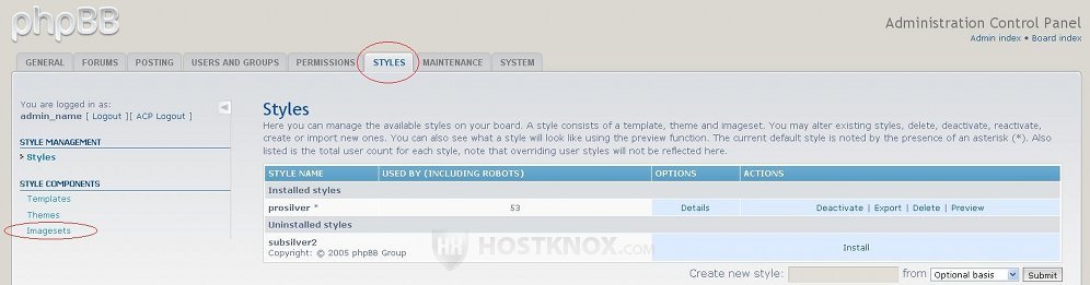 First, you have to log in to the administration control panel. Then click on the Styles tab, and once you're on the Styles page click on the Imagesets link on the left: