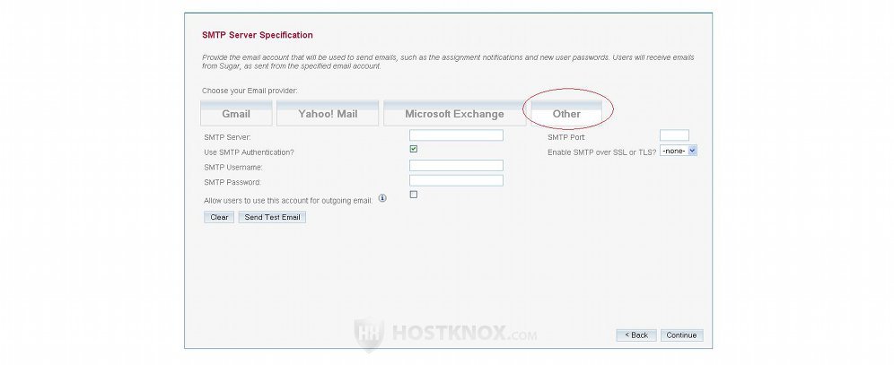 For example, you can use the settings displayed by this button to configure SugarCRM to use a mail account that you have created from the Email section of the HostKnox control panel (an email having your domain name in it). For more information on how to do it read the tutorial on creating a mail account.